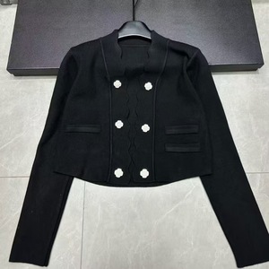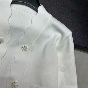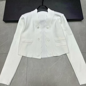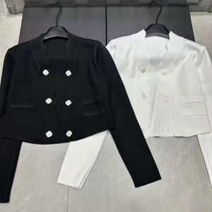 波浪领山茶花朵纽扣小香装饰针织开衫2025秋季修身显瘦长袖外套女