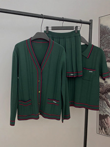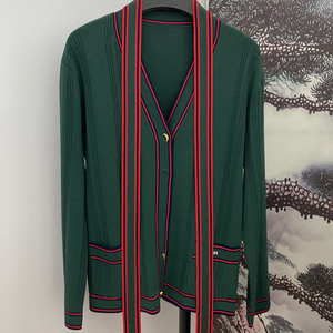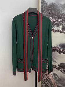 文艺风复古撞色V领门襟配腰带针织开衫女2025夏季新款