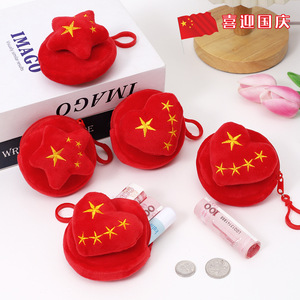 新款国庆五角星挂件钥匙扣包包学生零钱包挂件装饰耳机包五星红旗