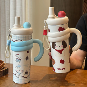 可爱保温杯女生大容量水杯女新款2025高颜值带茶仓办公室冰霸杯子