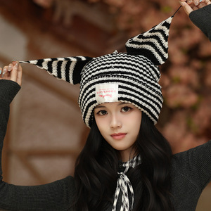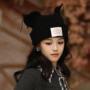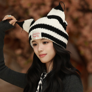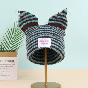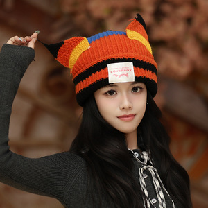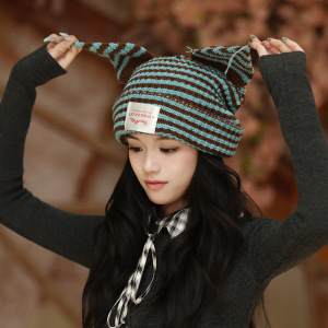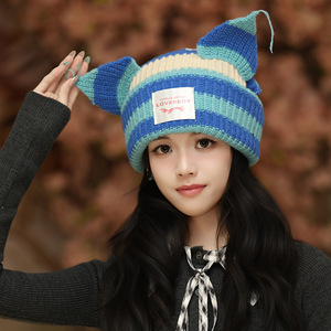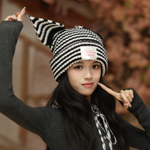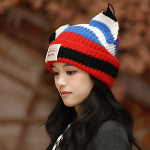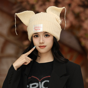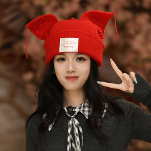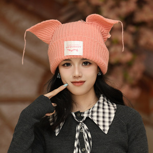 秋冬针织帽男女同款可爱小猪猫耳朵针织毛线帽保暖加厚针织毛线帽