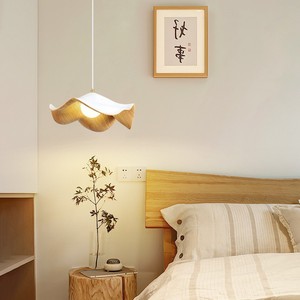 北欧创意原木纹色荷叶餐厅灯吊灯花朵民宿吧台灯日式侘寂风吊线灯