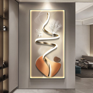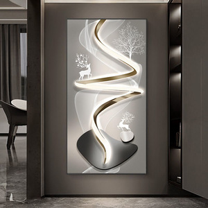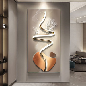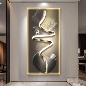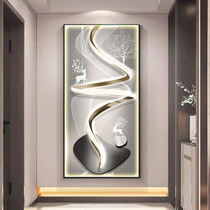 麋鹿玄关装饰画寓意好镶钻发光带灯走廊过道挂画轻奢现代客厅壁画