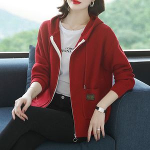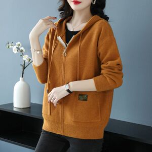 连帽毛衣外套女秋冬季2025新款洋气宽松显瘦外穿带帽拉链针织开衫