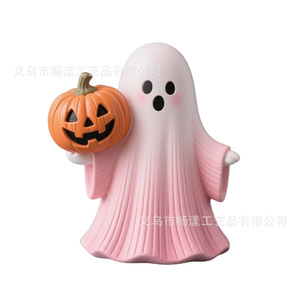 跨境新款万圣节粉色南瓜幽灵树脂工艺摆件可爱风立体装饰萌趣吸睛