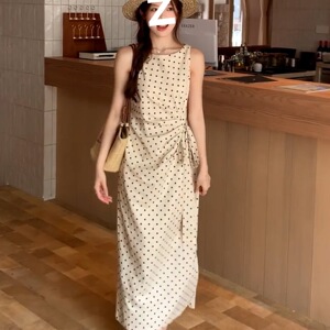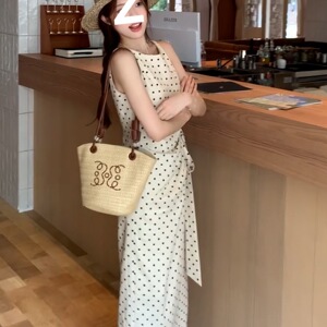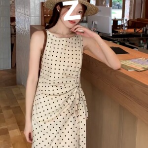 法式无袖波点背心连衣裙子女夏季2025新款海边度假巨好看掐腰长裙