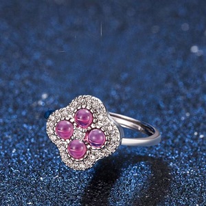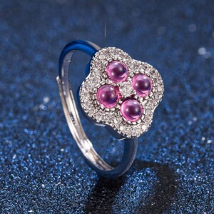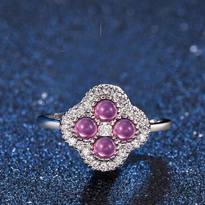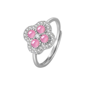 跨境欧美粉色锆石轻奢四叶草戒指花朵指环女简约精致高级手饰品