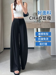 白色亚麻阔腿西装裤女夏季高腰垂感松弛老钱风不透冰丝棉麻拖地裤