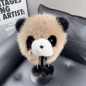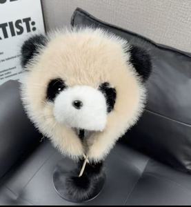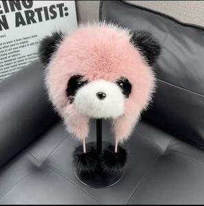 网红新款熊猫帽子时尚仿狐狸毛护耳帽成人冬季亲子批发潮流亲子款