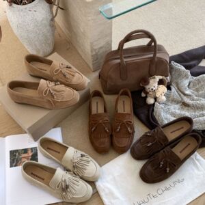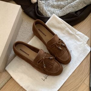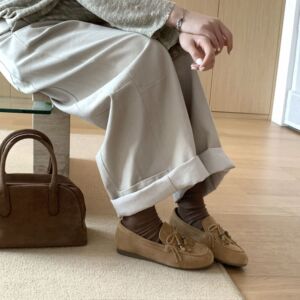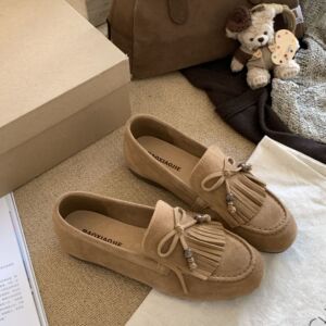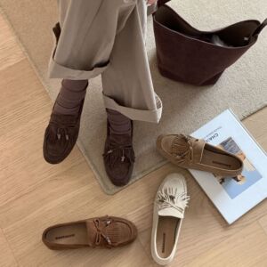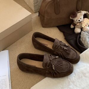 MARCO&JOYCE新款法式复古流苏圆头超软底乐福鞋擦色棕色做旧皮鞋