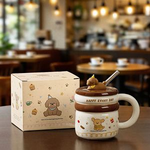 可爱小狗大容量马克杯带盖高级感家用高颜值陶瓷杯子女生小众水杯