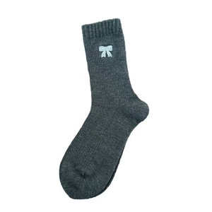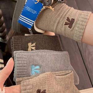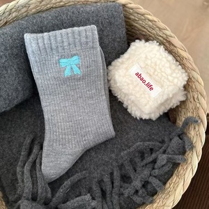 韩系ins蝴蝶结袜子女秋冬女袜暖绒复古中筒袜咖色系中筒堆堆袜子