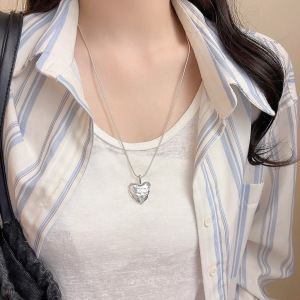 银色爱心星星吊坠项链女2025新款高级感百搭毛衣链抽拉式长款颈链