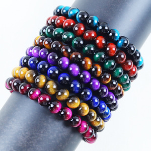 跨境热销虎眼石手链手工弹力绳款男女通用手串人造水晶现货速发