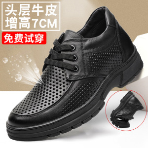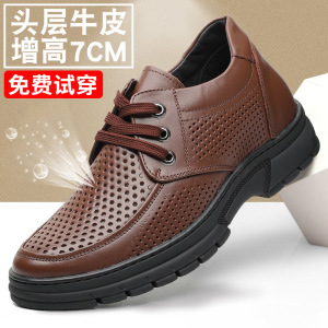 隐形内增高鞋男士8cm商务休闲皮鞋真皮凉鞋镂空男鞋舒适透气夏季