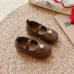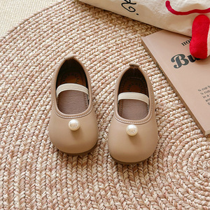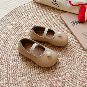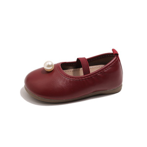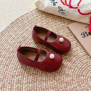 韩版珍珠女童皮鞋2025春秋儿童浅口单鞋玛丽珍红色奶奶鞋软底瓢鞋