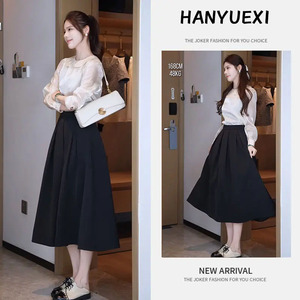 秋套装女2025新款法式高级感娃娃领长袖衬衫气质高腰半身裙两件套