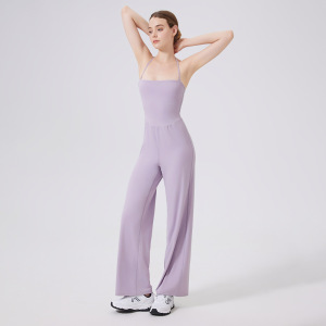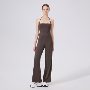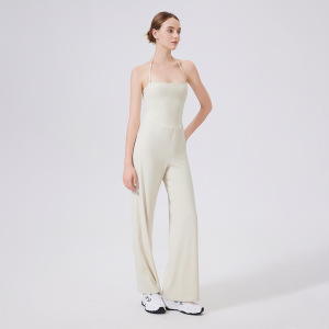 秋冬新款紧身裸感带胸垫瑜伽服挂脖两穿运动健身跑步连体直筒裤