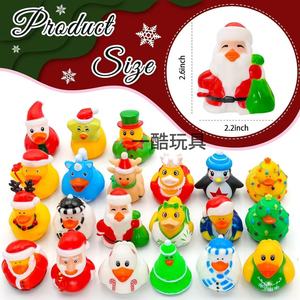 亚马逊搪胶圣诞鸭子吱吱叫造型鸭节日鸭浮水洗澡玩具鸭派对装饰摆