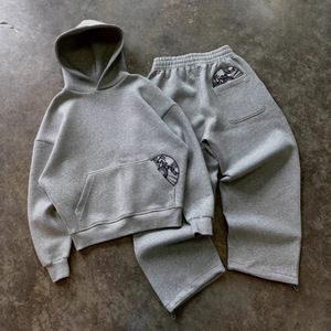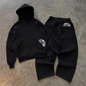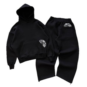 跨境连帽套头卫衣套装高街hip-hop重工图案刺绣宽松休闲卫裤套装