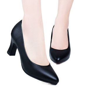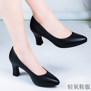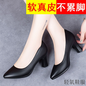 2025新款工作鞋黑色面试酒店职业鞋软底皮鞋高跟粗跟单鞋女鞋夏季