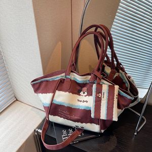 撞色条纹大包包女2025新款秋季时尚腋下包休闲帆布单肩斜挎托特包