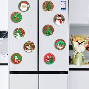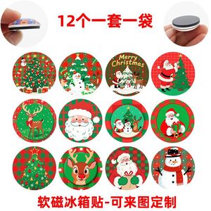 红绿格子圣诞老人圣诞树麋鹿雪人玻璃贴片软磁冰箱贴圣诞节日装饰