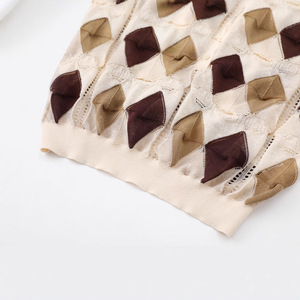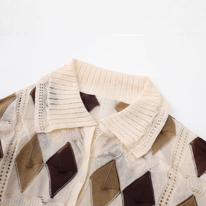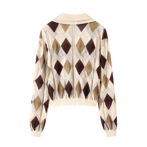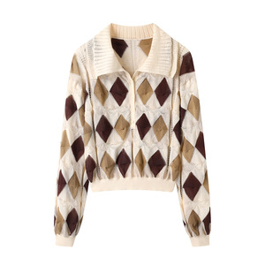 现货2025秋新款撞色甜美菱格翻领针织衫小上衣2J3E466