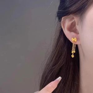 金色蝴蝶结流苏耳钉女甜美新款转运珠爱心在逃公主耳坠耳饰首饰