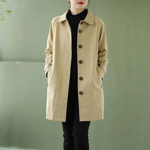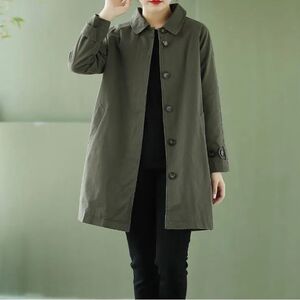 洗水棉风衣女中长款秋装韩版大码宽松大衣春秋休闲纯色风衣外套