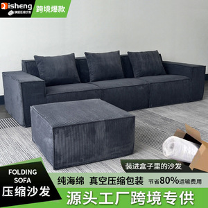 压缩豆腐块沙发灯芯绒布艺大黑牛纯海绵外贸无骨架客厅沙发sofa
