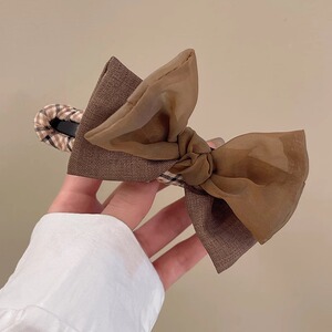 6#卡其+咖双蝴蝶结鸭嘴夹 夹子11cm 蝴蝶结约9cm