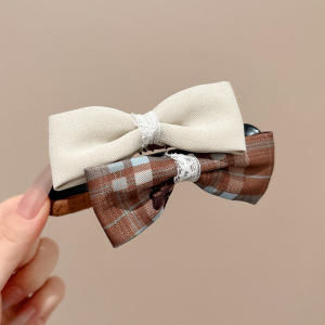 可爱布艺蝴蝶结发夹女2025新款夏季一字鸭嘴夹发卡后脑勺撞色抓夹