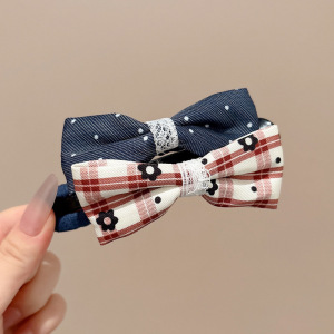 7#牛仔蓝+红条纹双蝴蝶结鸭嘴夹 夹子11cm 蝴蝶结约9cm