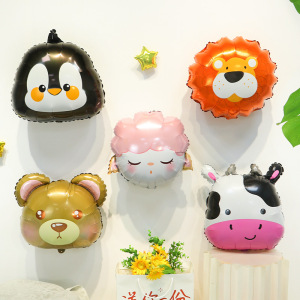 可爱卡通动物头像铝膜气球儿童周岁生日派对商场学校活动装饰拍照