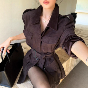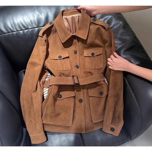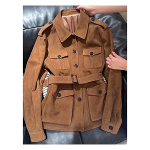 复古机车麂皮绒外套女秋冬款美式慵懒翻领高级感宽松飞行夹克上衣