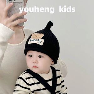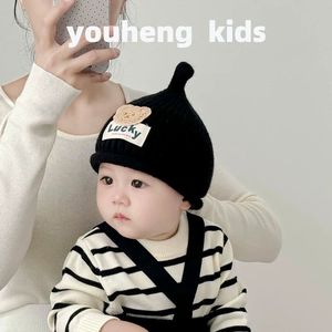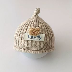 儿童帽子秋冬季毛线帽新款立体小熊新生儿宝宝女童韩版潮