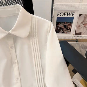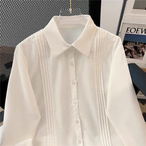白色衬衫jk长袖原创学院制服基础风琴褶上衣精致开襟新款上衣衬衣