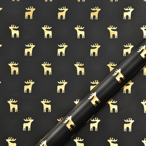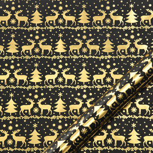 新款烫金圣诞包装纸 复古黑金麋鹿雪花圣诞树礼物礼品包装纸批发