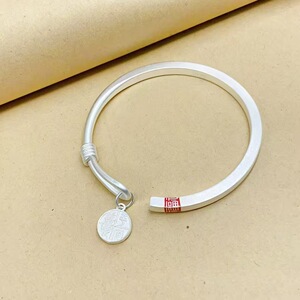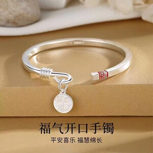 福字手镯2025新款素圈磨砂传承平安喜乐镯子实心合金镀银抖音