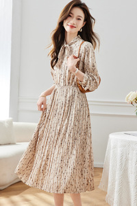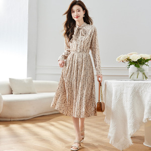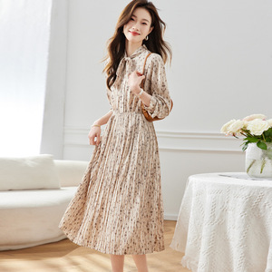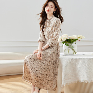 清新碎花真丝连衣裙浪漫文艺复古风中长裙时尚潮流百搭高腰A字裙