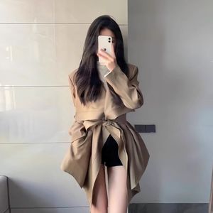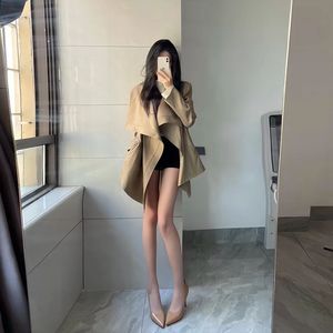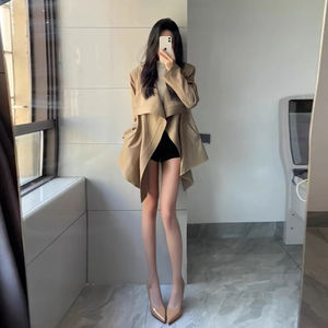 2025春秋中长款学生英伦风衣女小个子落肩设计感西装外套潮