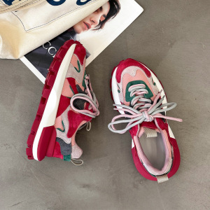 粉色厚底爆款气质老爹鞋女2025春季新款小众设计感百搭休闲运动鞋
