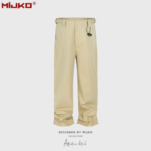 MIJKO男装女双腰假两件拼接设计感工装裤男女同款直筒休闲长裤潮