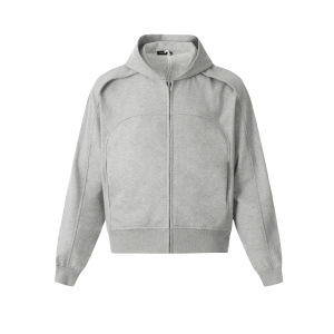 0183美式复古高级感潮流纯色解构型外套设计男式宽松开衫连帽卫衣
