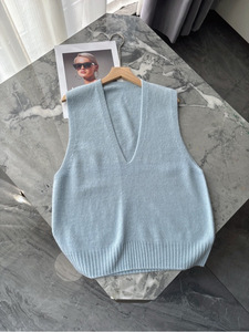 25年秋冬季新款大V领套头宽松显瘦高级感韩版马甲针织衫上衣时尚
