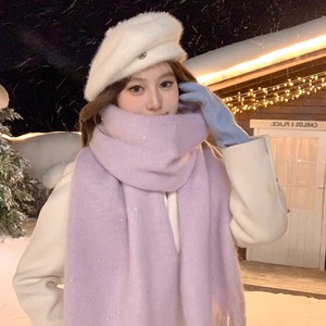 纯色加厚大围巾女款2025冬季新款韩系氛围感秋冬披肩围脖护颈白色