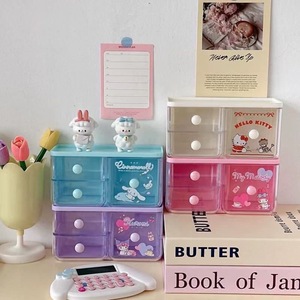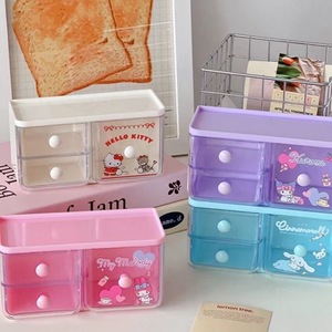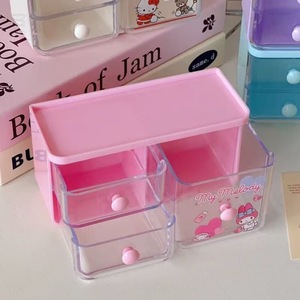 可爱三丽鸥卡通桌面抽屉美乐蒂收纳盒抽屉式迷你文具透明整理盒