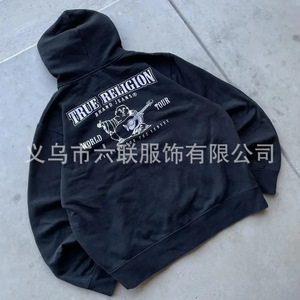 跨境欧美潮牌TRUE RELIGION图案印花卫衣男女同款宽松百搭连帽衫