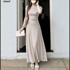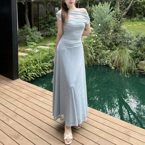甜美气质少女法式大码假两件连衣裙气质2025条纹夏季新款收腰长裙